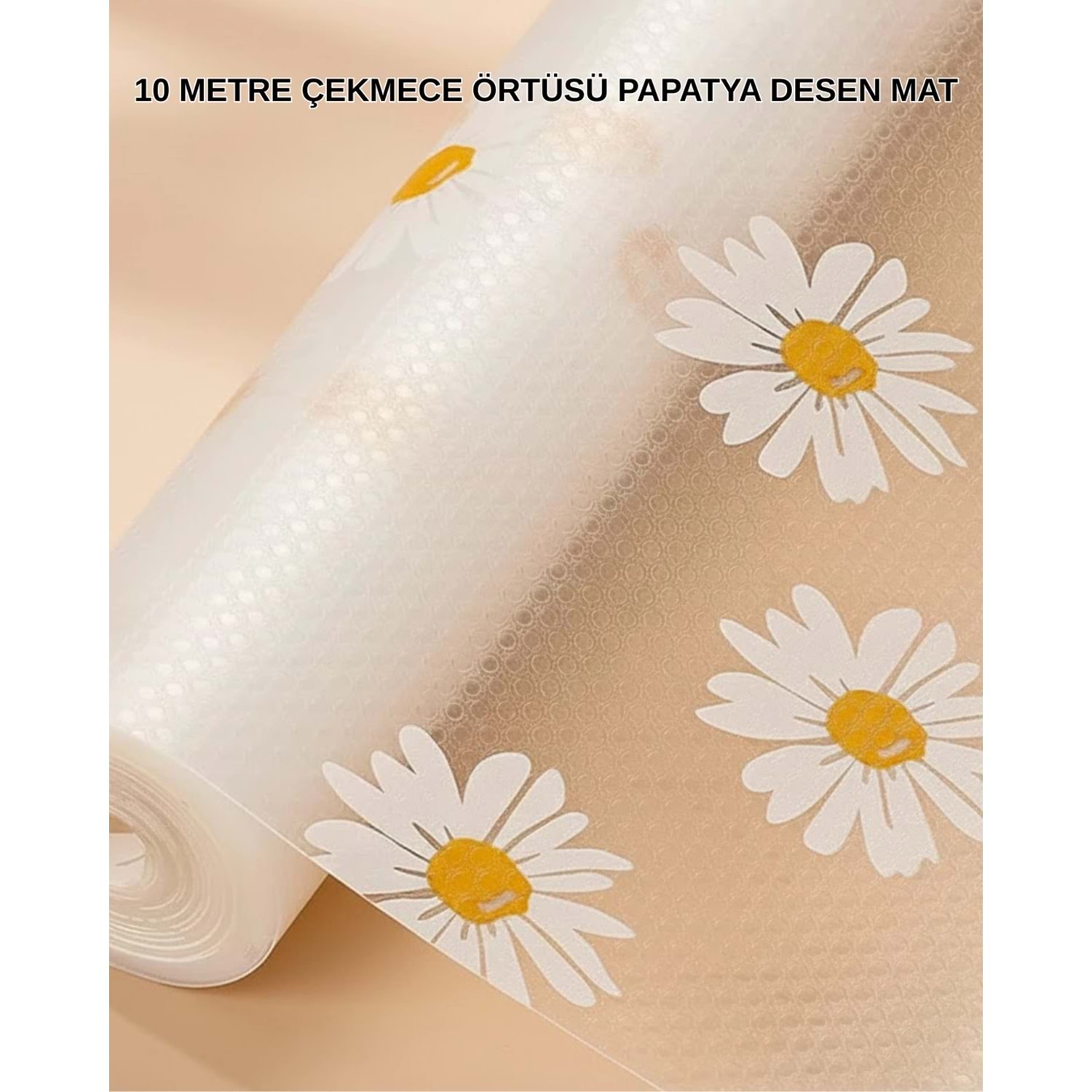 10 Metre Papatya Desenli Dolap İçi Kaymaz Koruyucu Mat