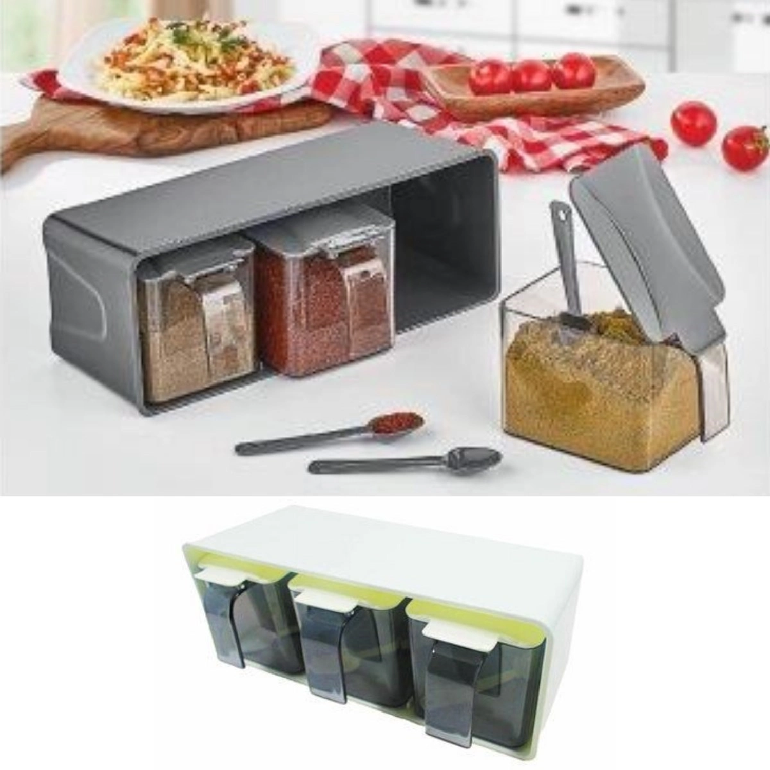 Baharat Düzenleyici 3'lü Plastik Kapaklı Baharatlık Seti (5047)