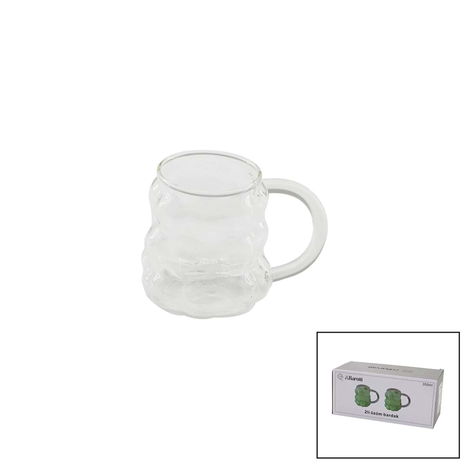 2PCS ÜZÜM - KABARCIKLI KULPLU CAM BARDAK TERMİSİL - ISIYA DAYANIKLI BOROSİLİKAT350ML (5047)