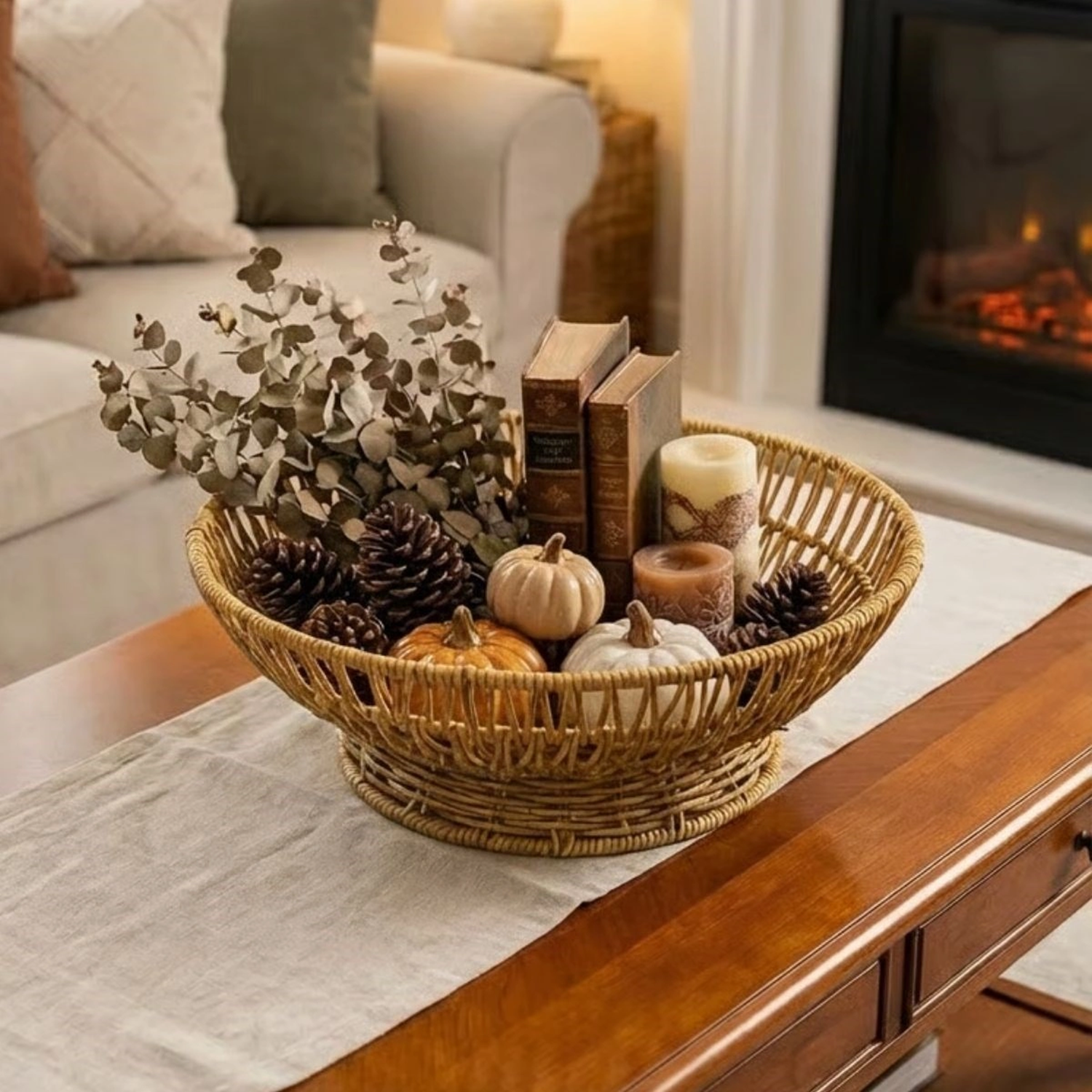 31 cm Plastik Rattan Servis Çanağı – Doğal Hasır Görünümlü Dekoratif Meyve, Ekmek ve Sunum Kasesi (5047)