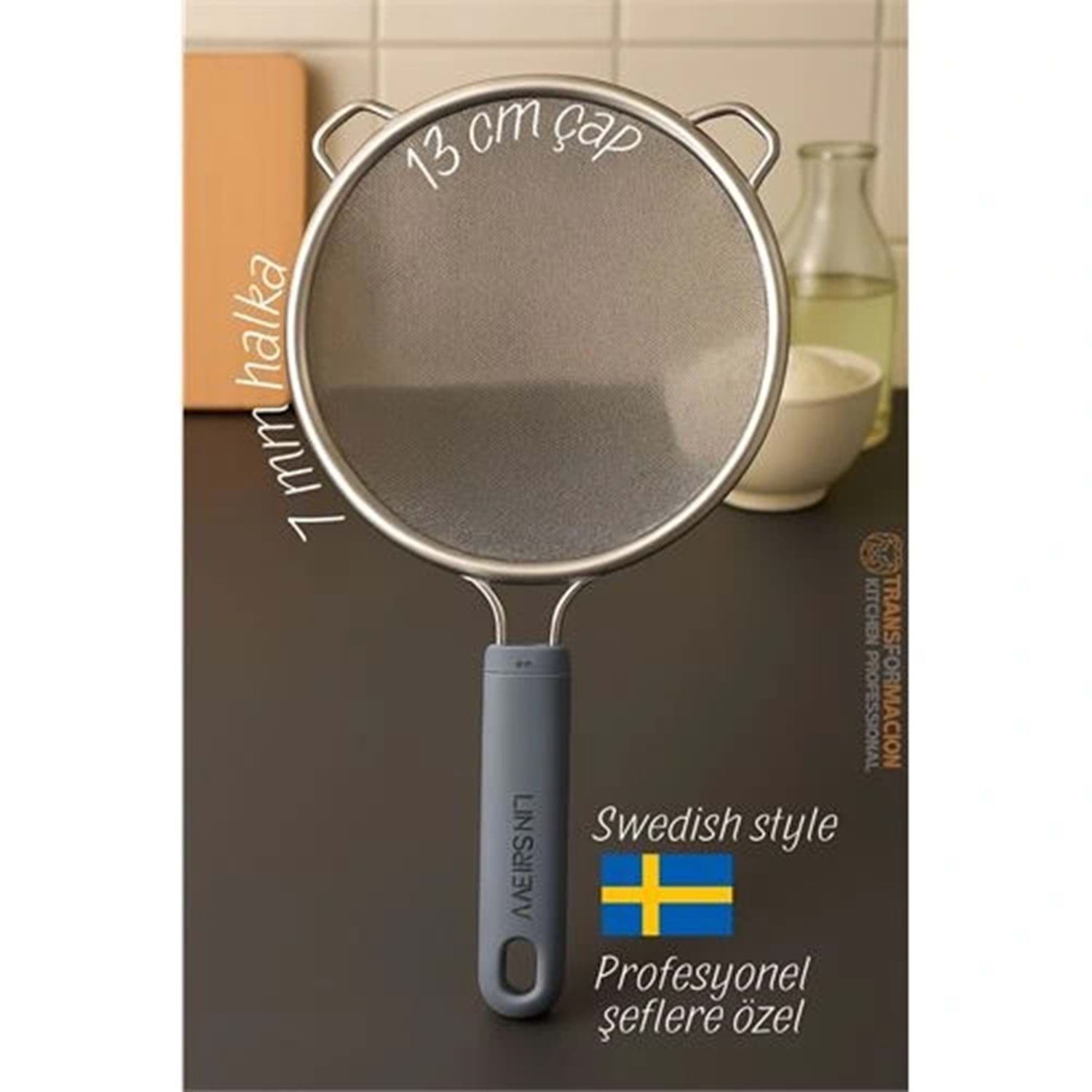 Inox İsveç Dizayn Süzgeç - 7 mm kalınlık halka 304 Çelik Profesyoneller İçin
